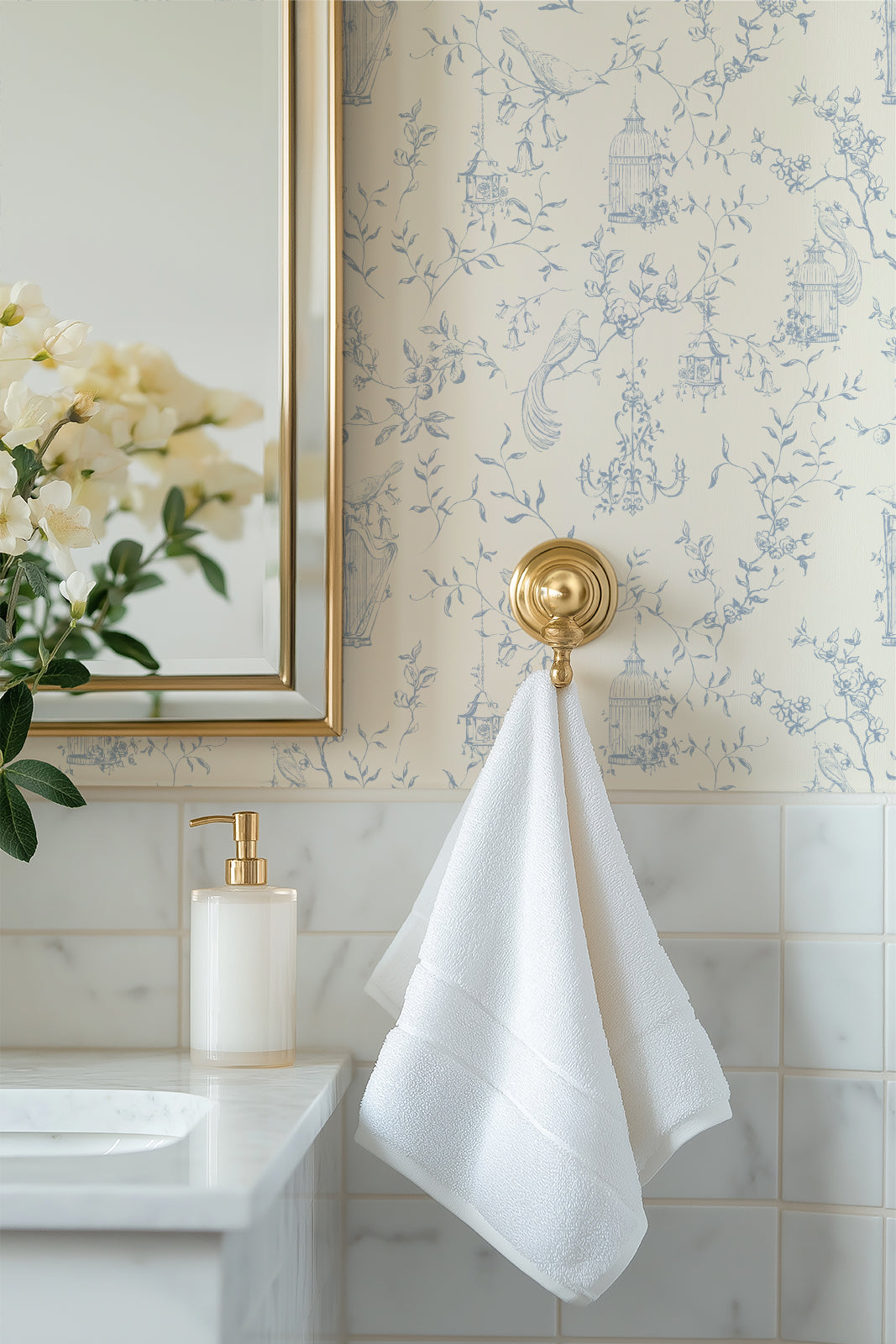 Transform the home with our elegant blue floral wallpaper and add a cottage-chic feel with our French Country Farmhouse wallpaper rolls featuring botanical motifs with leaves, flowers, birds and fine lines. With a neutral ivory beige background color and blue hand painted toilet patterns, it can easily match your rustic wooden home decor and neutral cottage color scheme.
